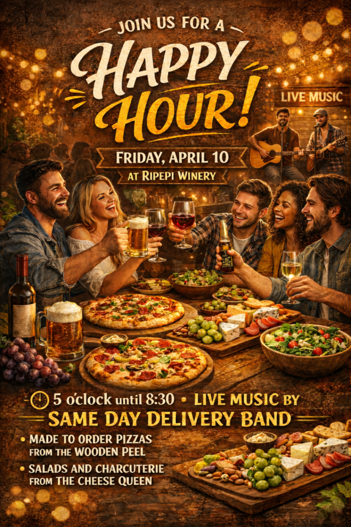 Happy Hour every second Friday of the month with live music, food truck, wine specials and more!